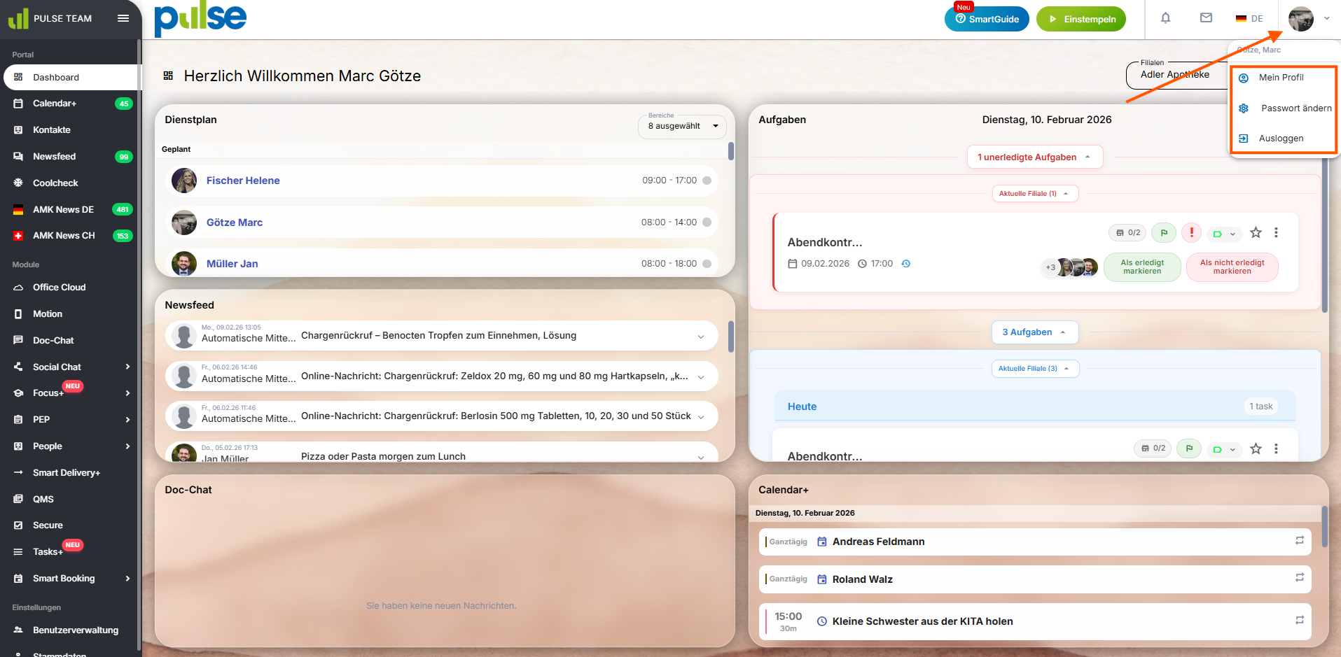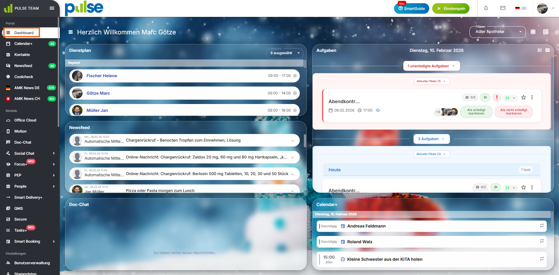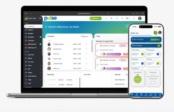 Über die PULSE Team App können ausgewählte Module auch unterwegs genutzt werden. So haben Mitarbeitende jederzeit Zugriff auf relevante Informationen, die unabhängig vom Standort sind.