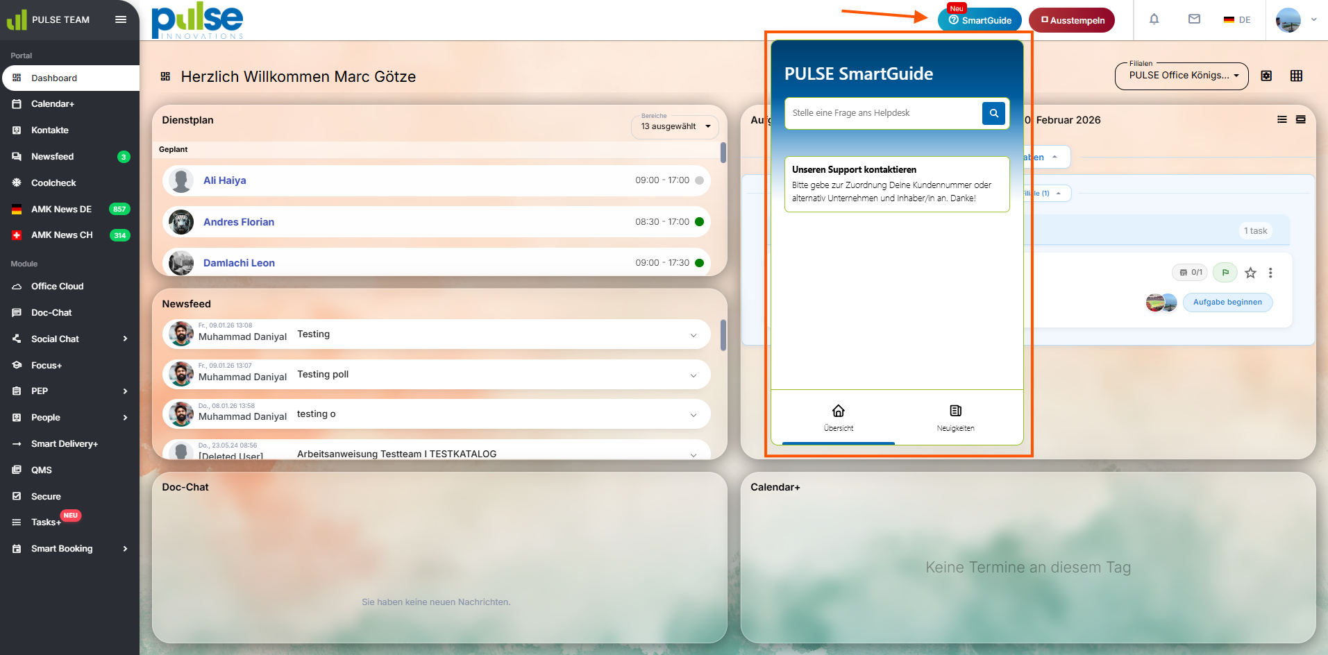 Alles, was für den täglichen Umgang mit der PULSE Software relevant ist, wird entweder im Rahmen des Onboardings oder direkt im System erklärt.
