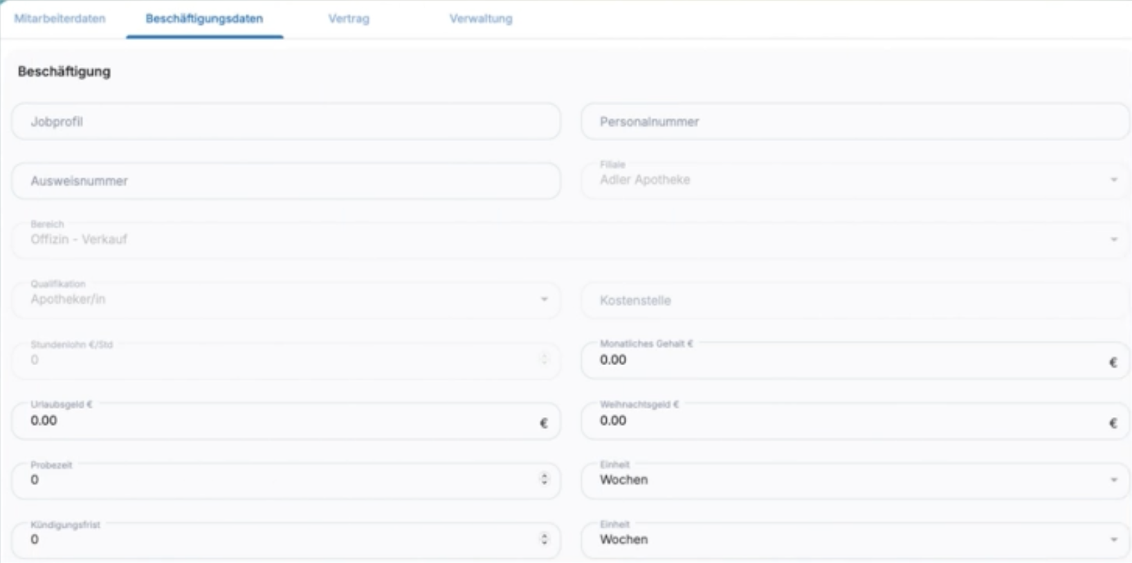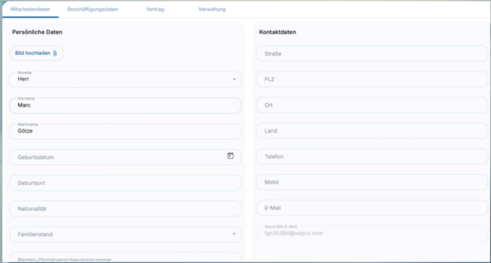 - Beschäftigungsdaten (optional, rollenbasiert sichtbar)