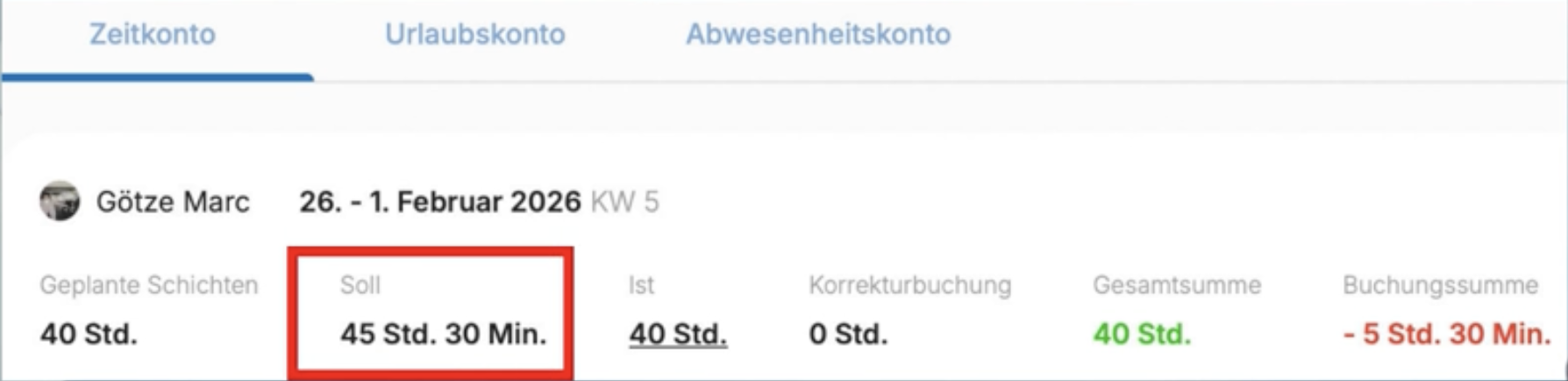 Die tägliche Sollzeit ist Grundlage für Urlaub, Feiertage und Zeitkontoabweichungen.