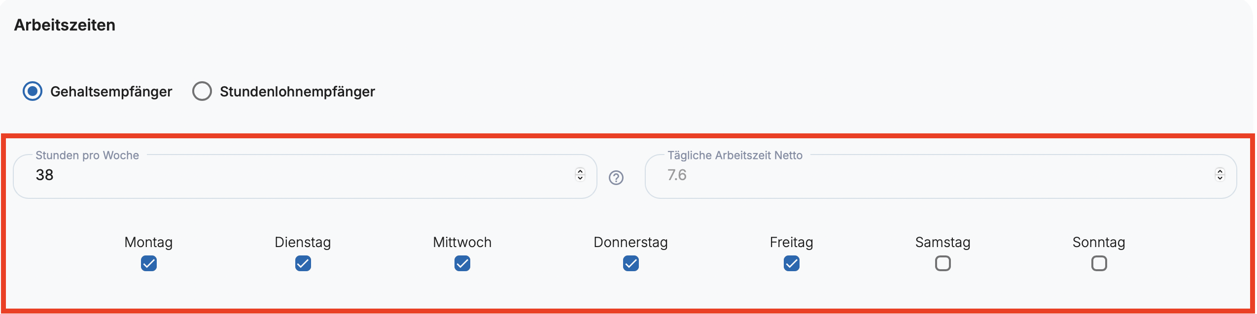 - Wochenarbeitszeit