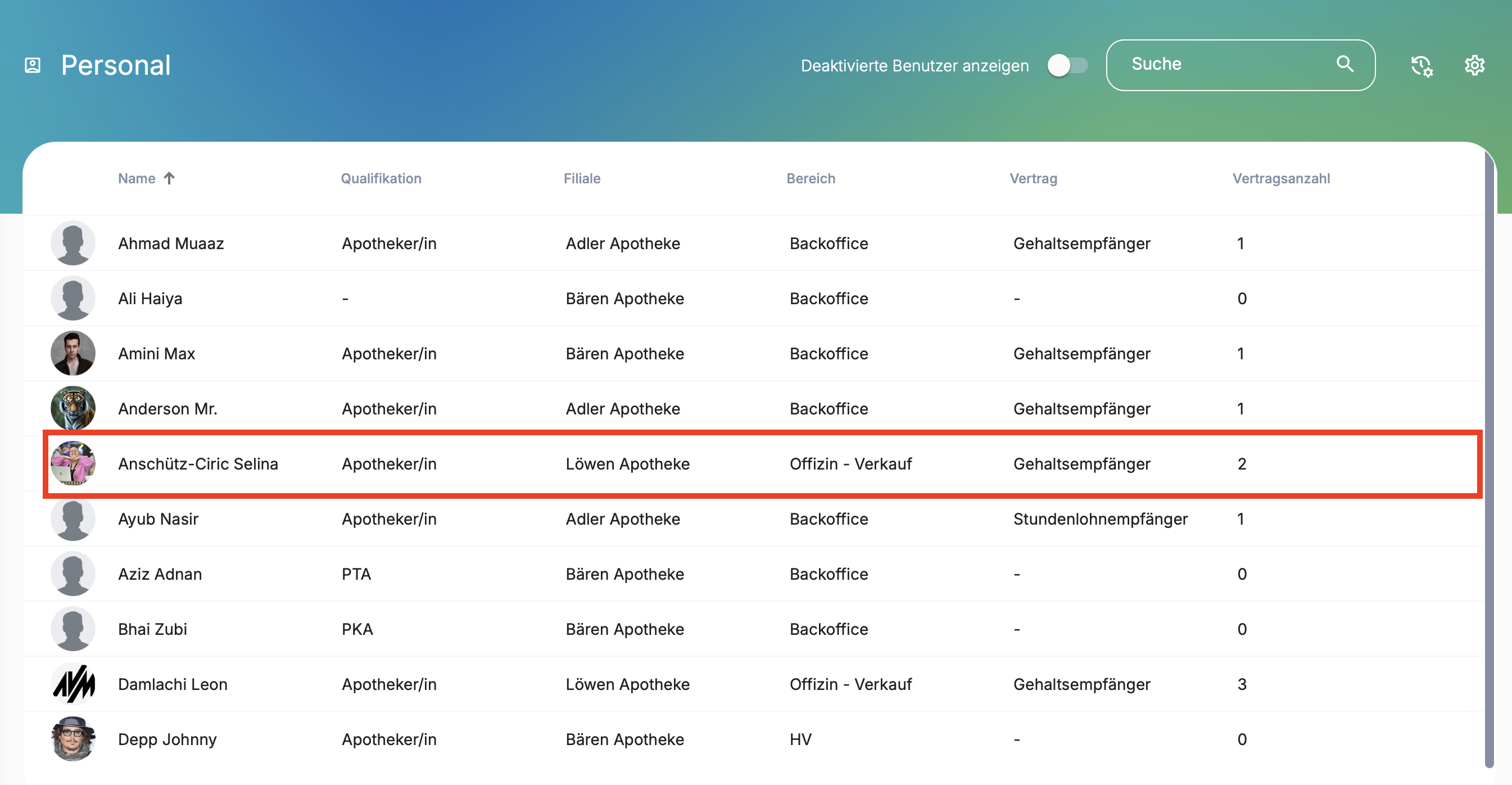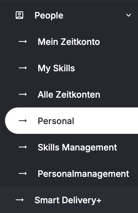 Zugriff über die Modul-Leiste → PEOPLE → Reiter „Personal“.