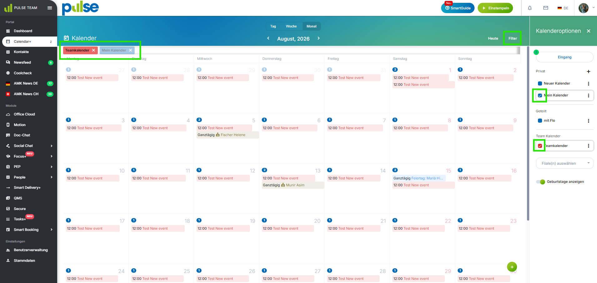 ✔️ Öffnen Sie die Kalenderübersicht auf der rechten Seite indem Sie auf "Filter".