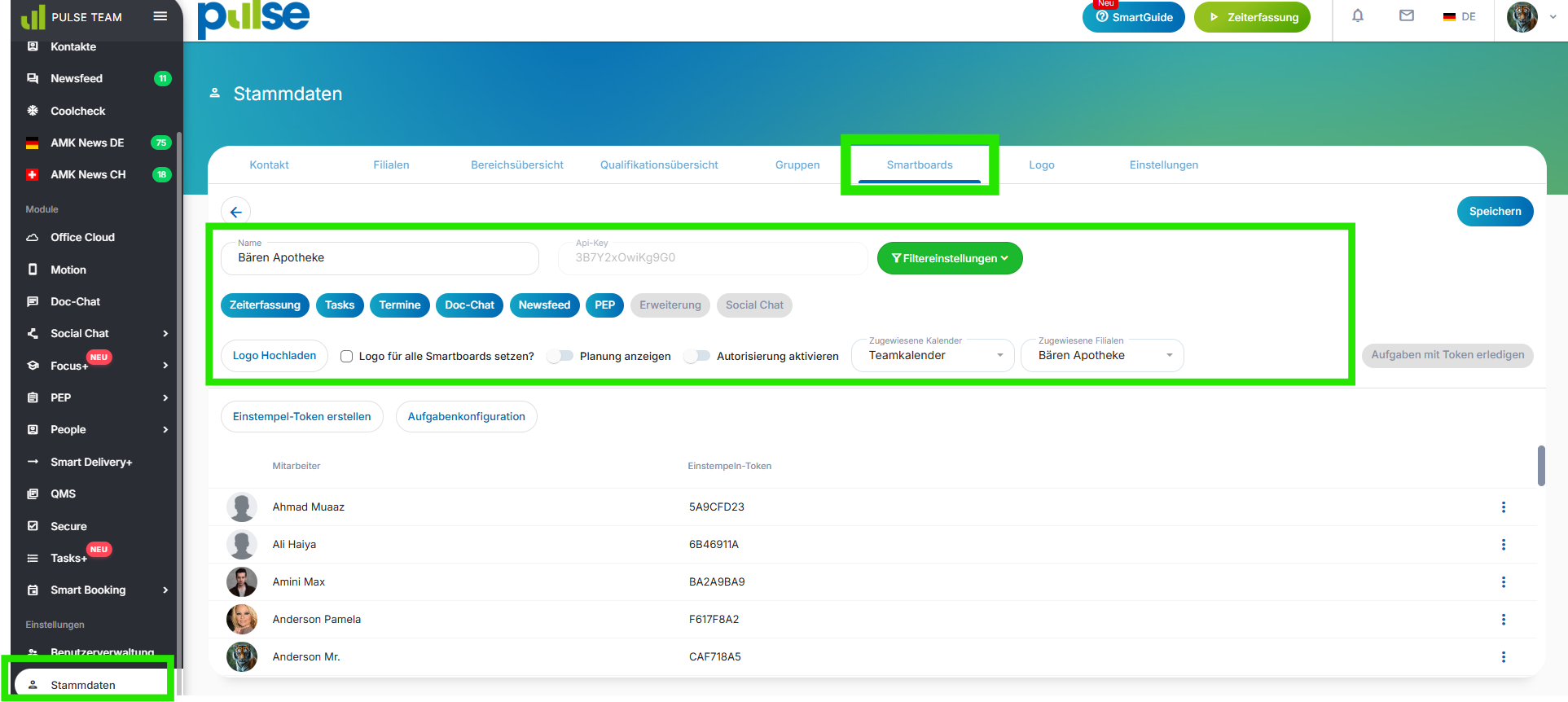 Wenn Mitarbeiter, Filialen, Abwesenheiten oder bestimmte Inhalte auf dem Smartboard nicht dargestellt werden, liegt das in der Regel an den Smartboard-Einstellungen in den Stammdaten.