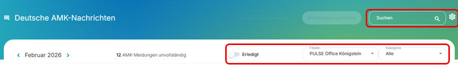 Sie können AMK-Meldungen nach verschiedenen Kriterien filtern: