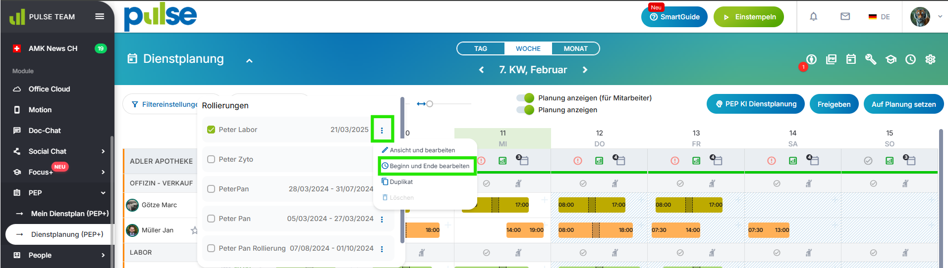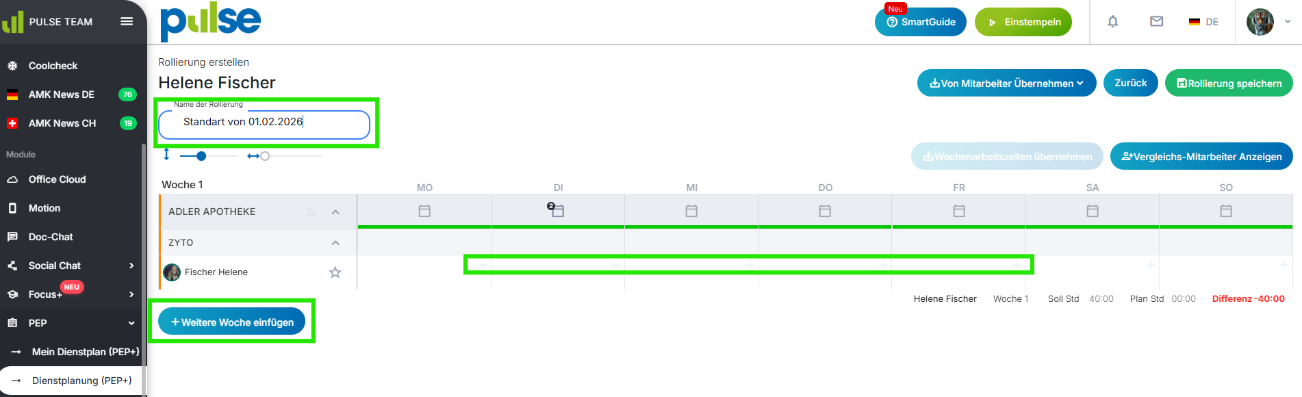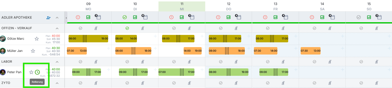 Wie erstelle ich eine Rollierung im Dienstplan für einen Mitarbeiter?