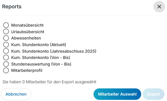 Dort können Sie verschiedene Reports auswählen und gezielt die entsprechenden Mitarbeitenden auswählen,