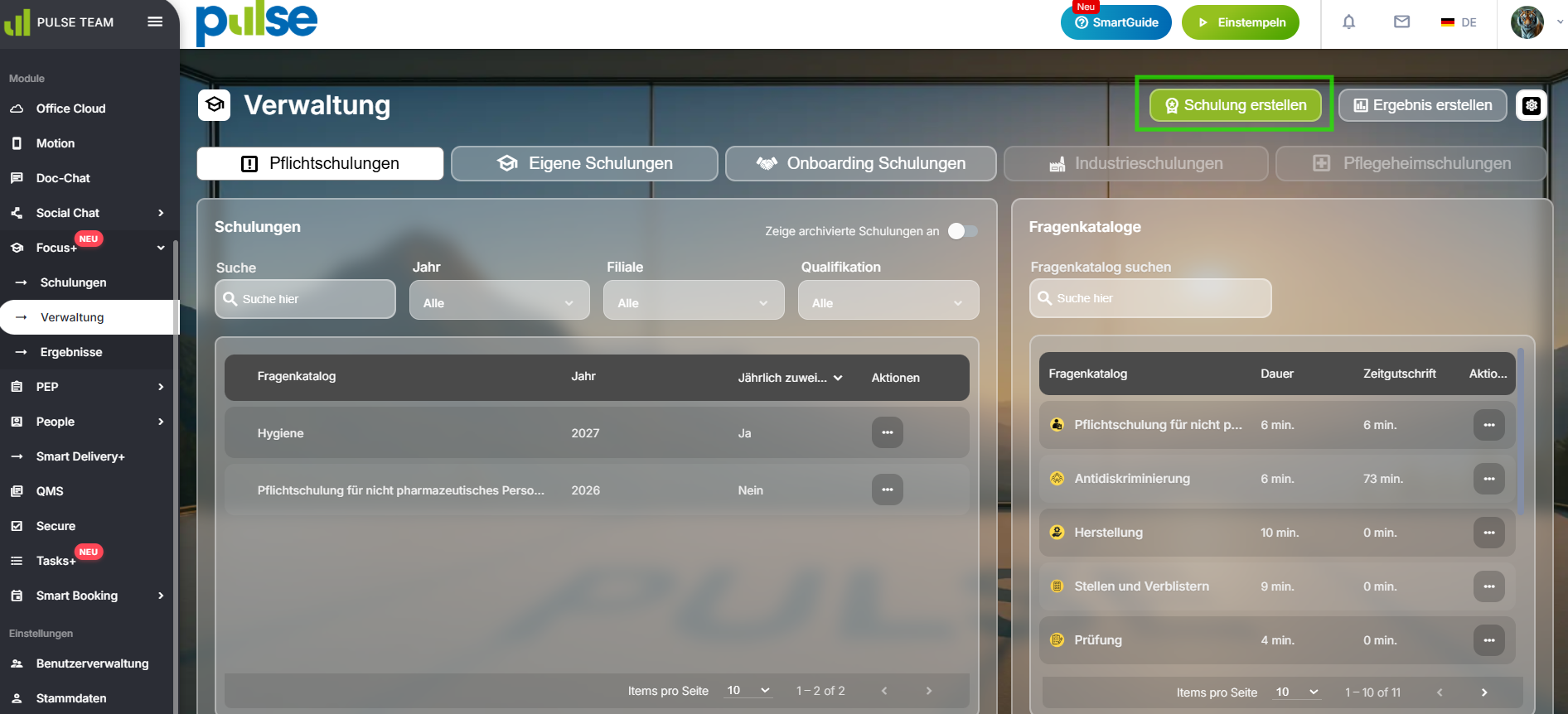 - Erstellen Sie über den Button "Schulung erstellen" eine neue Schulung.