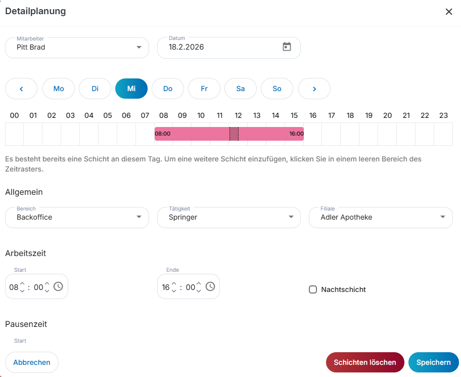 📌 Schicht im Dienstplan erstellen
