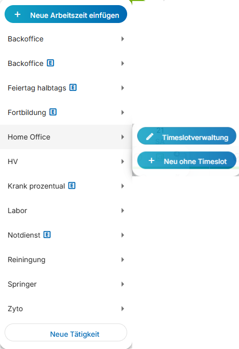 Falls Sie eine individuelle Schicht erstellen möchten, die nicht als Timeslot gespeichert ist oder gespeichert werden soll, nutzen Sie die Option "Neu ohne Timeslot":