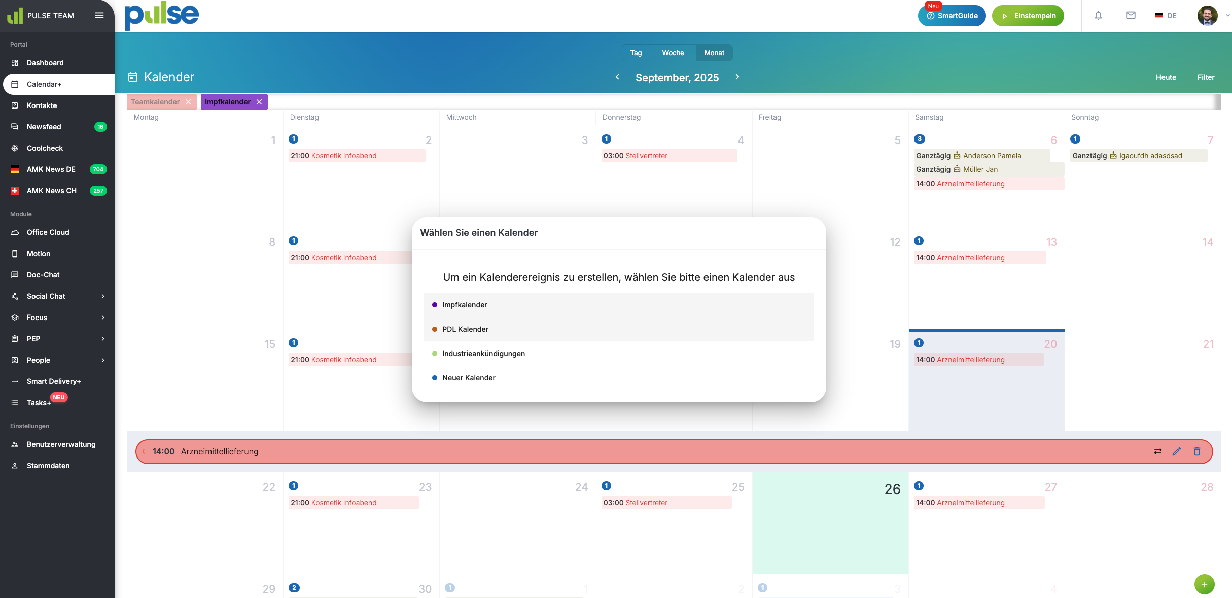 Mit PULSE Calendar+ können Sie private Kalender erstellen, verwalten und individuell anpassen.