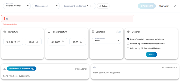 - Speichern: Tippen Sie auf „Speichern“, um die Aufgabe zu erstellen.