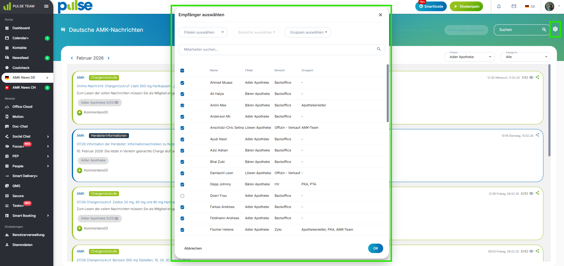 - Empfänger festlegen: Bestimmen Sie, wer die Meldung sehen soll.