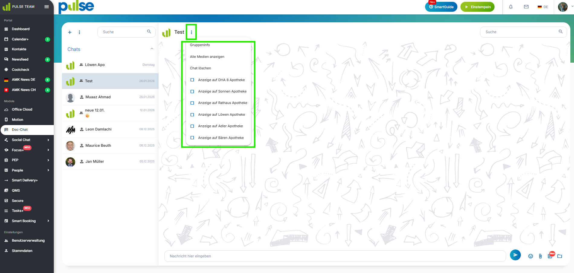 - Öffnen Sie in Doc-Chat die gewünschte Chatgruppe.