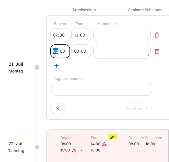 - Ändern Sie das Ende der falsch gestochenen Arbeitszeit auf den Beginn der Pause.