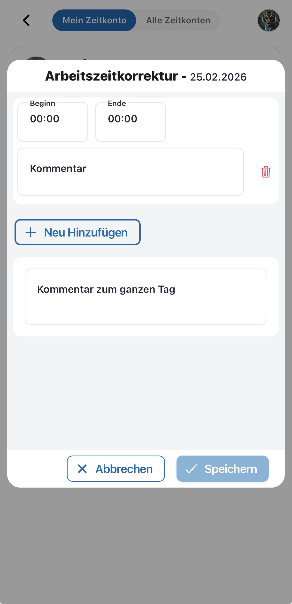 Wie kann ich in der APP meine Arbeitszeit kommentieren?