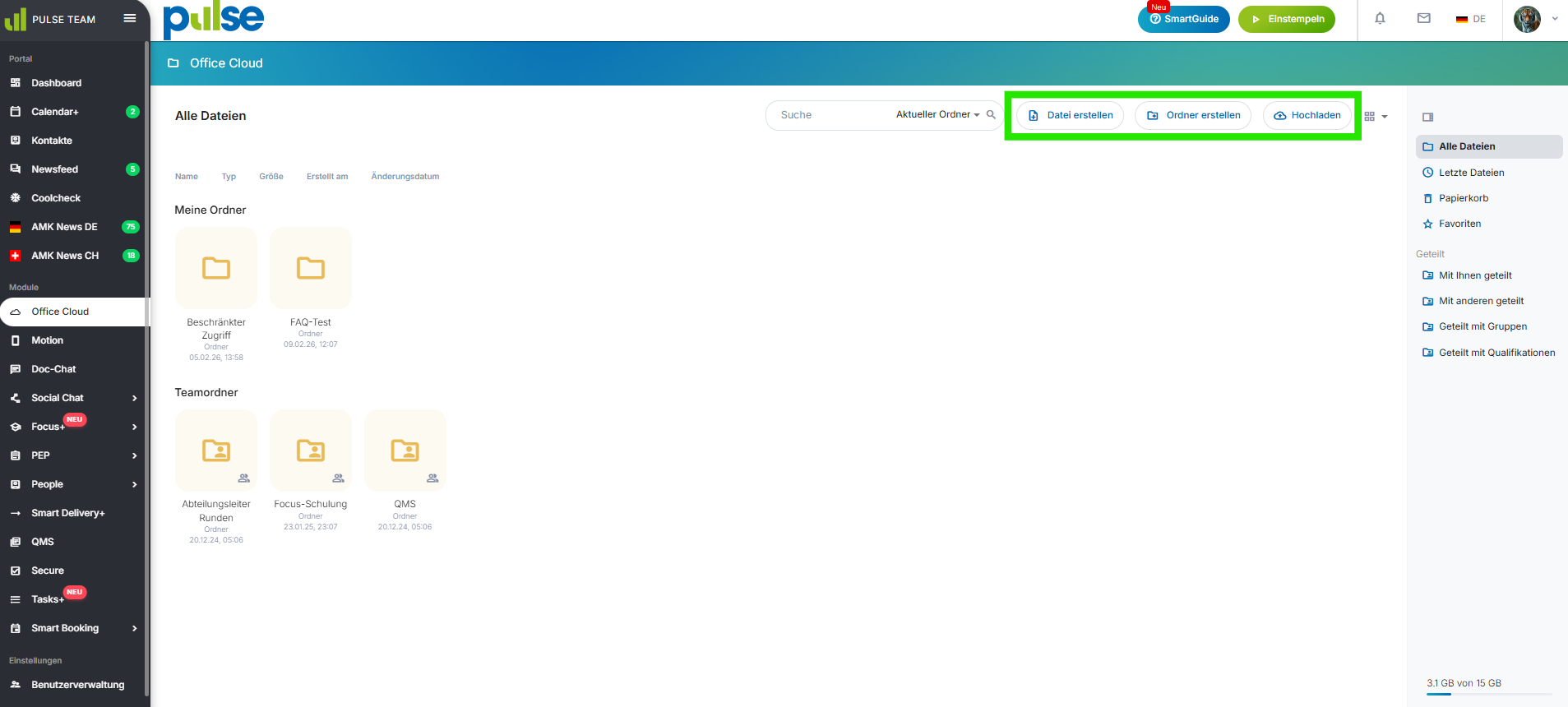 In der Office Cloud stehen Ihnen verschiedene praktische Aktionsbuttons zur Verfügung, die das Hochladen von Dateien und Ordnern noch einfacher machen.