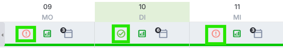 - Ein grüner Haken bedeutet, dass die Personaleinsatzplanung für diesen Tag optimal ist.