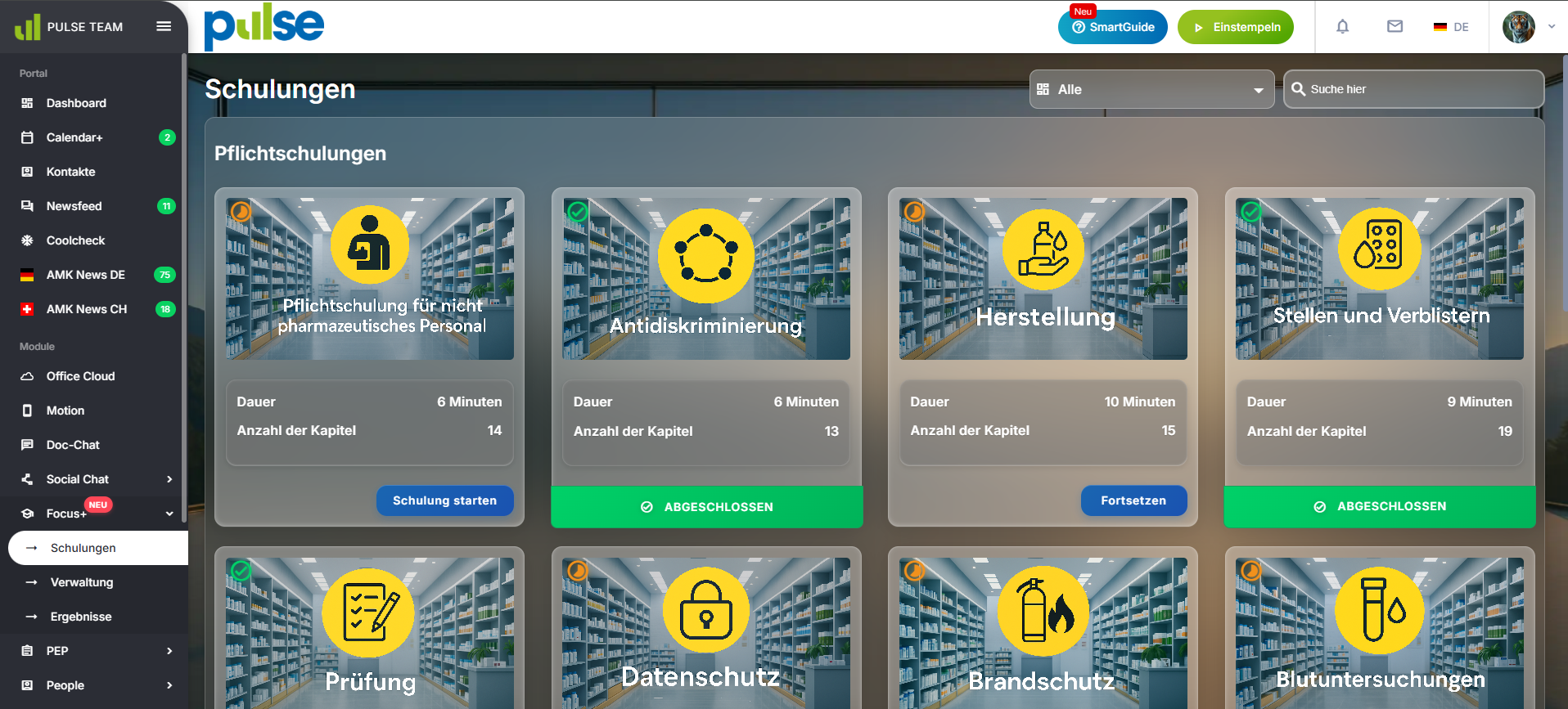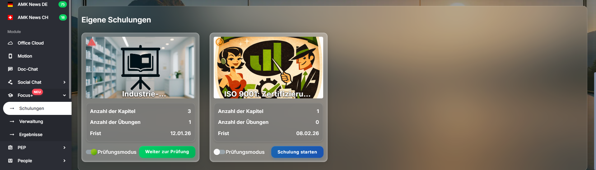 - Gehen Sie zum Focus-Modul > Schulungen und wählen Sie aus der Übersicht die Schulung aus, die Ihnen zugewiesen wurde.