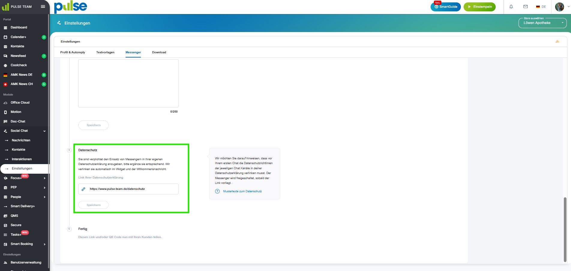 Wir haben in PULSE Social Chat wichtige Funktionen integriert, damit Sie DSGVO-konform mit Ihren Kunden kommunizieren können.